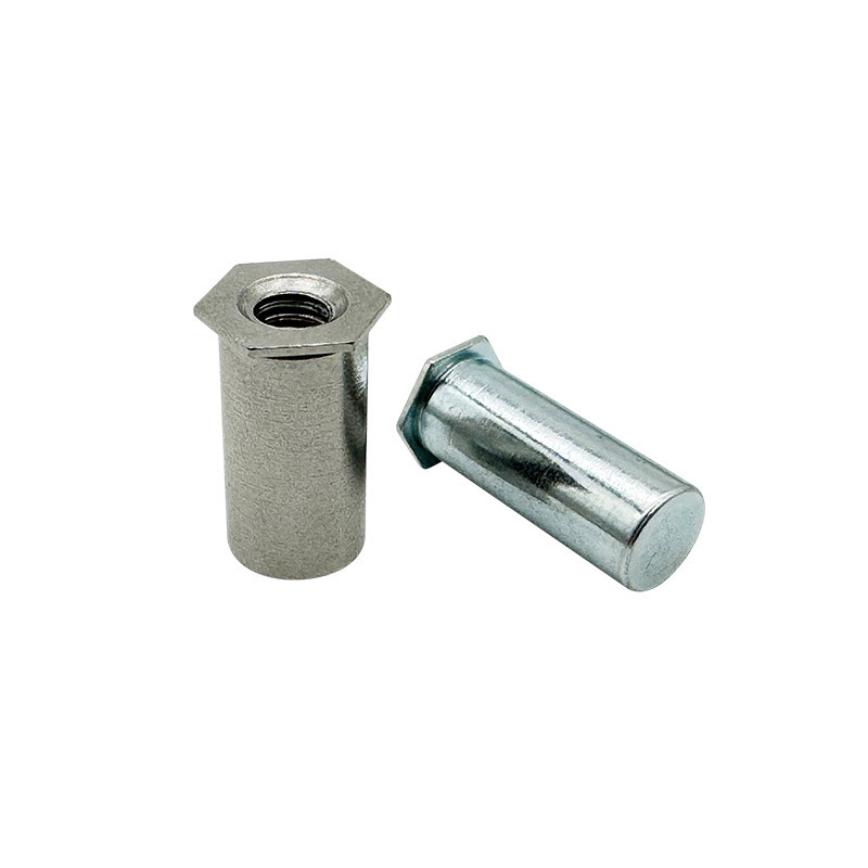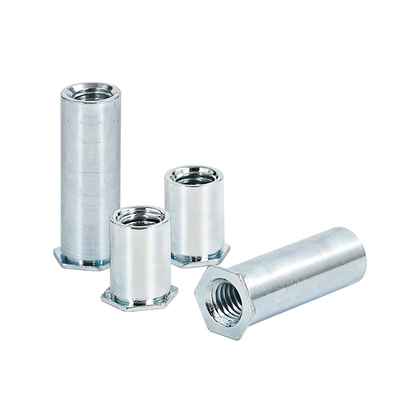 కార్బన్ స్టీల్ షడ్భుజి రివెట్ గింజ కాలమ్ మీడియం-కార్బన్ స్టీల్ నుండి వారి ప్రధాన యాంత్రిక లక్షణాలను పొందండి, ఇది తరచుగా ISO 898 క్లాస్ 8 లేదా SAE J429 గ్రేడ్ 5 ను పోలి ఉంటుంది. ఈ ఉక్కు అధిక లాగడం బలం (సాధారణంగా 800 MPa కంటే ఎక్కువ) మరియు మంచి దిగుబడి బలాన్ని కలిగి ఉంటుంది, కాబట్టి ఇది బలమైన శ్రమలు, వైబ్రేషన్ మరియు కదిలే లోడ్లు లేకుండా బట్టి.