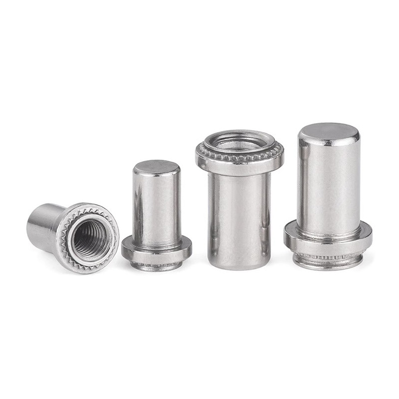 సీలింగ్ క్లిన్చింగ్ గింజ చాలా సూటిగా ఉంటుంది, మీరు ప్రామాణిక న్యూమాటిక్ లేదా హైడ్రాలిక్ క్లిన్చింగ్ సాధనాలను ఉపయోగించవచ్చు. ఇది ఎలా పనిచేస్తుందో ఇక్కడ ఉంది: మొదట, గింజను ముందే పంచ్ చేసిన రంధ్రంలో ఉంచండి, ఆపై ఒత్తిడిని వర్తింపజేయడానికి పంచ్ మరియు డై సెట్ను ఉపయోగించండి. డై గింజ యొక్క క్లిన్చ్ కాలర్ చుట్టూ షీట్ మెటల్ను నొక్కి, ఒక శీఘ్ర దశలో ఘన యాంత్రిక తాళాన్ని ఏర్పరుస్తుంది.