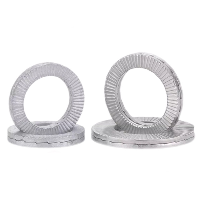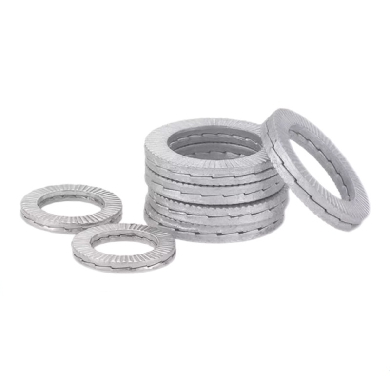 డబుల్ ఎండ్ స్వీయ లాకింగ్ దుస్తులను ఉతికే యంత్రాలు అధిక-వైబ్రేషన్ పరిసరాలలో కట్టుకోవడానికి అనువైనవి. వారి అనువర్తనాలు ఆటోమోటివ్ తయారీ, భారీ యంత్రాలు, వ్యవసాయ పరికరాలు, ఏరోస్పేస్ మరియు రైల్వే వ్యవస్థలు వంటి క్లిష్టమైన రంగాలను కలిగి ఉంటాయి, ఇక్కడ సురక్షితమైన బందులు మొత్తం భద్రతకు ఖచ్చితంగా కీలకం.