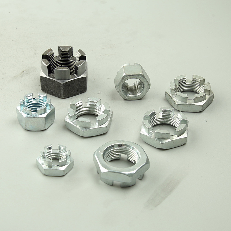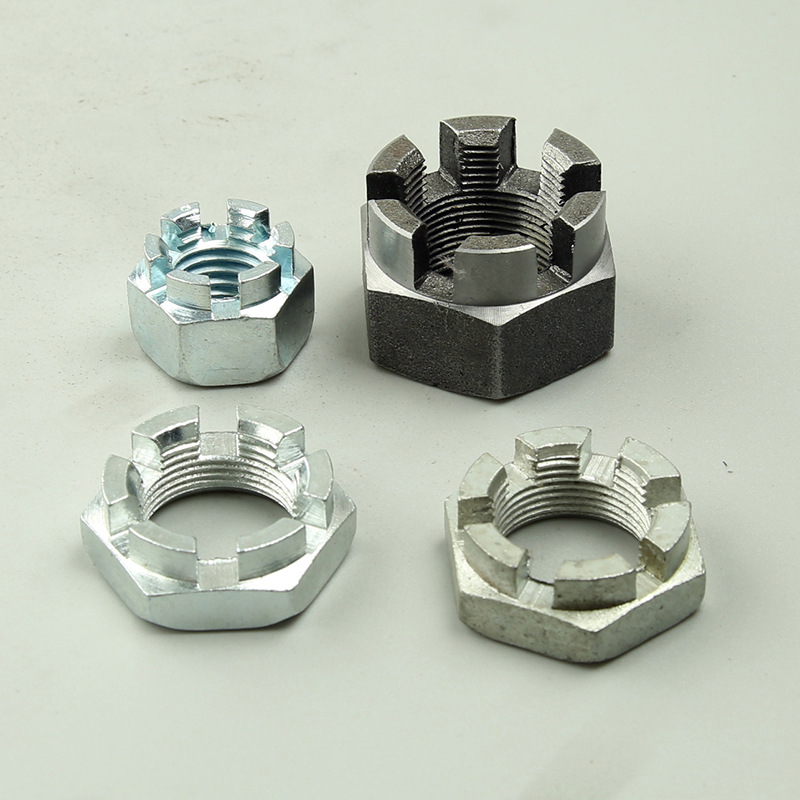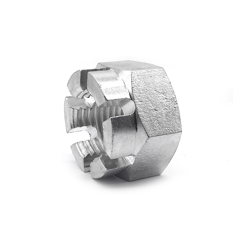 జ: స్లాట్తో డబుల్ సురక్షితమైన కిరీటం గింజ యొక్క ప్రధాన పని థ్రెడ్ చేసిన బోల్ట్ లేదా స్టూడ్లోకి గట్టిగా లాక్ చేయడం - కాబట్టి కంపనం ఉన్నప్పుడు అది వదులుగా ఉండదు. ఇది ఆ కిరీటం (లేదా కాస్టెలేటెడ్, చిన్న నోచెస్ వంటివి) డిజైన్ను కలిగి ఉంది, ఇది స్లాట్ల ద్వారా కోటర్ పిన్ లేదా భద్రతా తీగను స్లైడ్ చేయడానికి మరియు బోల్ట్లోని రంధ్రం ద్వారా స్లైడ్ చేయడానికి మిమ్మల్ని అనుమతిస్తుంది. ఇది జారిపోని ఘన యాంత్రిక తాళాన్ని సృష్టిస్తుంది.