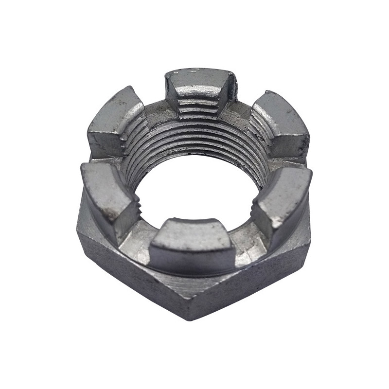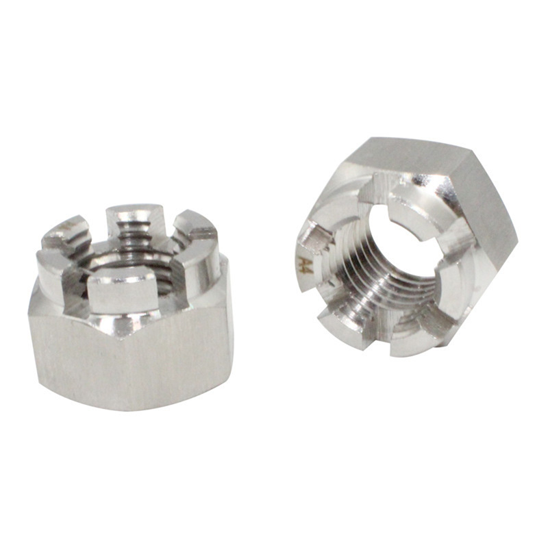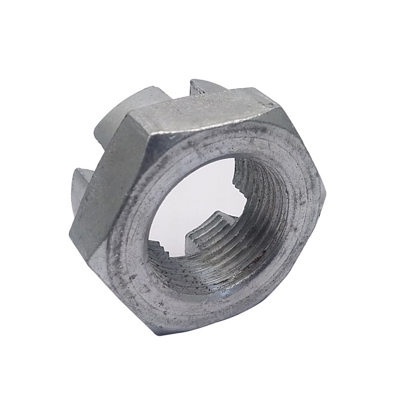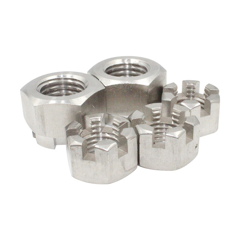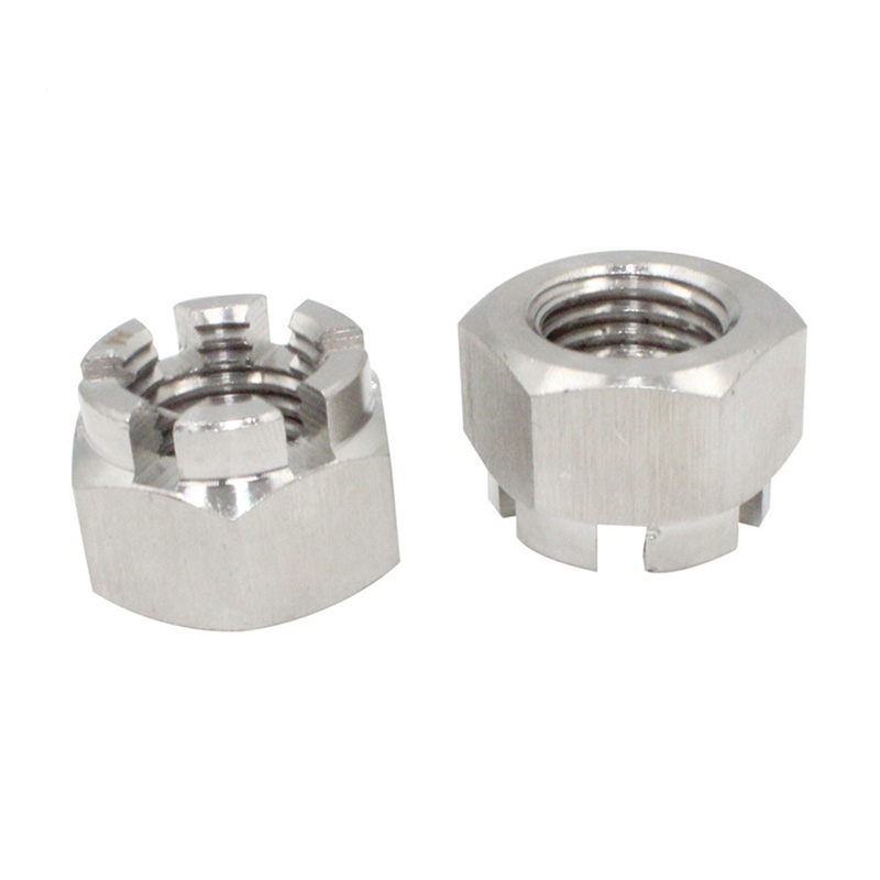 గోపురం భాగంలో అనేక స్లాట్లు ఉన్నాయి (సాధారణంగా ఆరు), ఇవి సమానంగా పంపిణీ చేయబడతాయి మరియు గింజ యొక్క అక్షం వెంట నేరుగా విస్తరిస్తాయి. ఈ స్లాట్లు ఖచ్చితంగా యంత్రంగా ఉంటాయి మరియు ప్రామాణిక ఓపెన్ పిన్లతో ఖచ్చితంగా సరిపోతాయి. ఈ స్లాట్డ్ రౌండ్ హెడ్ గింజ యొక్క రూపకల్పన ఆచరణాత్మక మరియు భద్రత-ఆధారితమైనది: మీరు గింజను బిగించిన తర్వాత, దానిని స్థానంలో పరిష్కరించవచ్చు, తద్వారా ఇది కంపనం లేదా ఇతర శక్తుల కారణంగా బోల్ట్ నుండి పడకుండా చేస్తుంది.