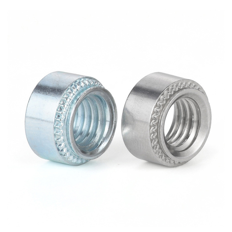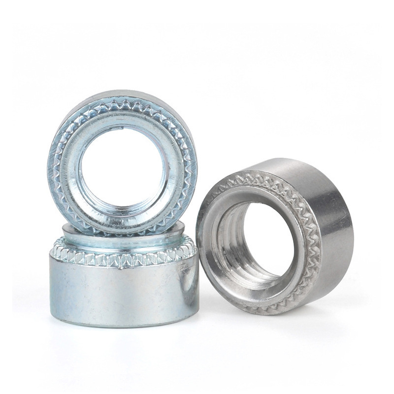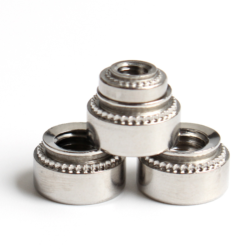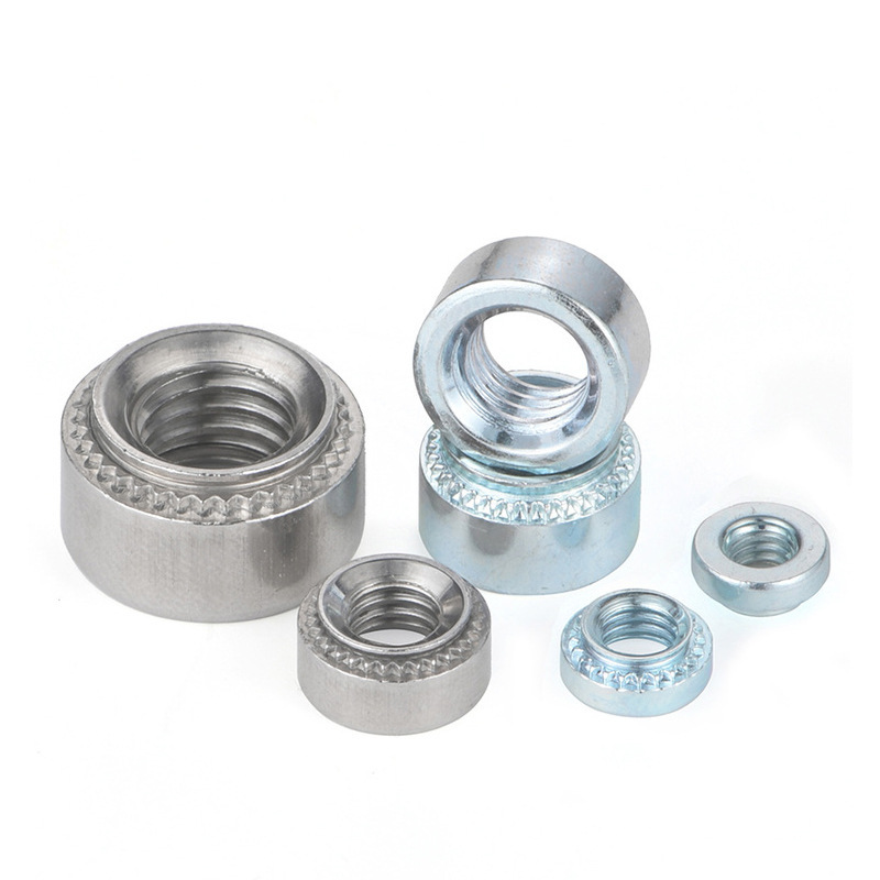 ప్లగ్-ఇన్ రివెట్ గింజల యొక్క పదార్థ ఎంపిక వైవిధ్యమైనది. వాటి ప్రధాన పదార్థాలు సాధారణంగా కార్బన్ స్టీల్, స్టెయిన్లెస్ స్టీల్ (కామన్ 304 స్టెయిన్లెస్ స్టీల్ లేదా 316 స్టెయిన్లెస్ స్టీల్ వంటివి) వంటి వివిధ రకాల ఉక్కులు; నిర్దిష్ట దృశ్యాలలో, ఇత్తడి లేదా అల్యూమినియం తయారీ పదార్థాలుగా కూడా ఉపయోగించబడుతుంది. తుప్పు నిరోధకతను మరింత మెరుగుపరచడానికి, స్టీల్ రివెట్ గింజలు సాధారణంగా ఉపరితల చికిత్స చేయబడతాయి. సాధారణ పూత ప్రక్రియలలో సంక్లిష్ట పరిసరాలలో వాటి తుప్పు నిరోధకతను పెంచడానికి గాల్వనైజింగ్ ఉన్నాయి.