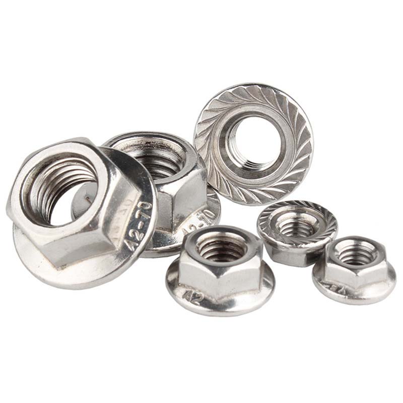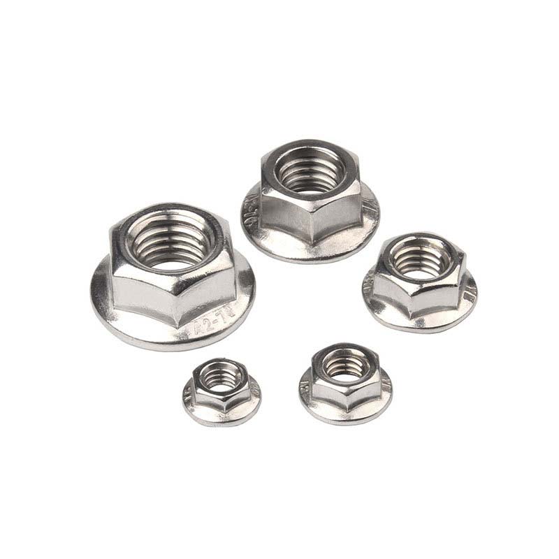 అంచుతో షడ్భుజి గింజలుప్రామాణిక షట్కోణ గింజను అంతర్నిర్మిత ఉతికే యంత్రం (ఫ్లాంజ్) తో కలిపే ఫాస్టెనర్లు. అవి ఉక్కు, స్టెయిన్లెస్ స్టీల్ లేదా పూతగల మిశ్రమాలతో తయారు చేయబడతాయి. అవి ప్రామాణిక బోల్ట్లకు సరిపోతాయి మరియు ప్రత్యేక దుస్తులను ఉతికే యంత్రాలు అవసరం లేదు. యంత్రాలు మరియు వాహనాలపై సంస్థాపనకు చాలా అనుకూలంగా ఉంటుంది.