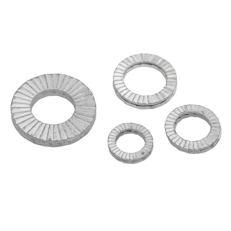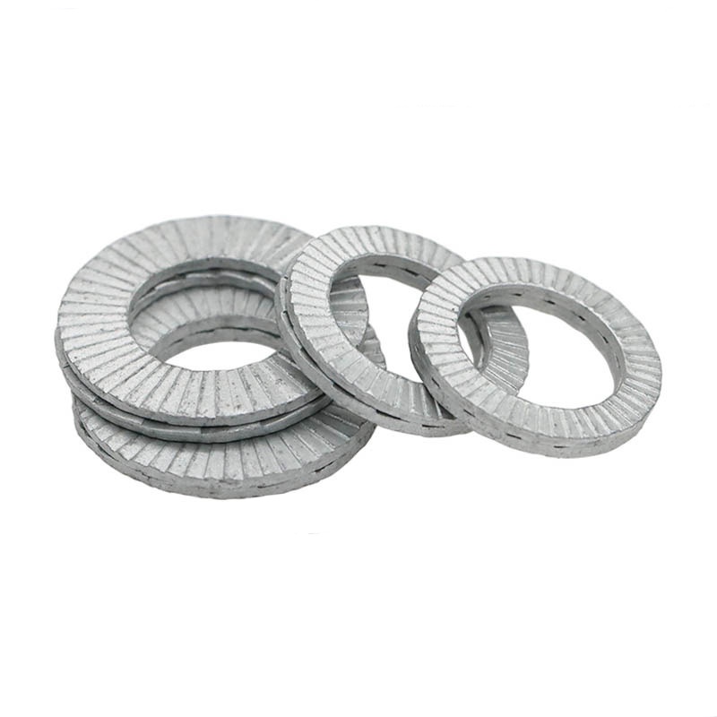 మా రెగ్యులర్ శాశ్వతంగా రెండు రెట్లు స్వీయ లాకింగ్ దుస్తులను ఉతికే యంత్రాలను జింక్ పూతతో కార్బన్ స్టీల్తో తయారు చేస్తారు. తుప్పును బాగా నిరోధించడానికి మీకు అవి అవసరమైతే, మాకు A2/A4 (304/316) స్టెయిన్లెస్ స్టీల్ వంటి ఎంపికలు ఉన్నాయి. జియామెట్ వంటి అదనపు పూతలు కూడా ఉన్నాయి, ఇది పర్యావరణానికి మంచిది, డాక్రోమెట్, మరియు మీకు కావాలంటే మీరు PTFE ముద్రలను పొందవచ్చు. పరిస్థితులు కఠినంగా ఉన్నప్పుడు కూడా దుస్తులను ఉతికే యంత్రాలు సరిగా లాక్ చేసేలా మేము పదార్థాలను ఎంచుకుంటాము.