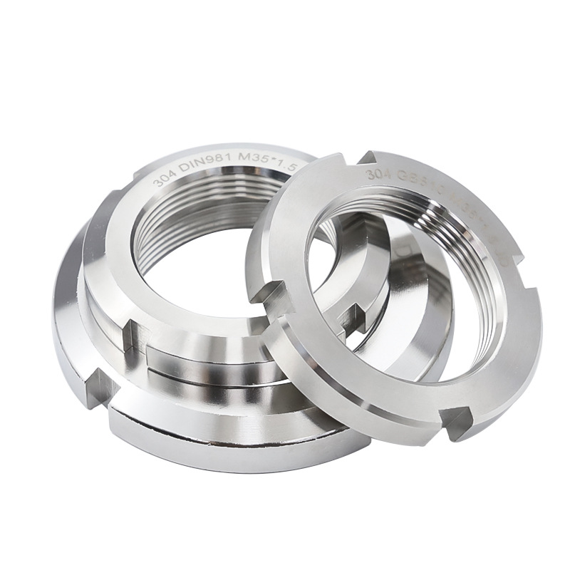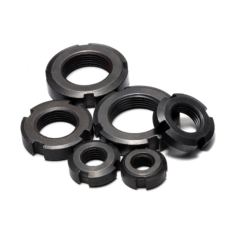పారిశ్రామిక యంత్రాలు ఈ పాజిటివ్గా లాకింగ్ స్లాట్డ్ లాకింగ్ రౌండ్ నట్లను విస్తృతంగా ఉపయోగిస్తాయి - ముఖ్యంగా గేర్బాక్స్లు, ప్రెస్లు మరియు కన్వేయింగ్ సిస్టమ్ల వంటి అధిక వైబ్రేషన్ పరిసరాలలో. ఈ గింజల యొక్క వృత్తాకార ఆకారం వాటిని ఆపరేట్ చేయడం సులభతరం చేస్తుంది మరియు డైనమిక్ లోడ్ ఉన్నప్పుడు లోపల లాకింగ్ భాగాలు వాటిని వదులుకోకుండా నిరోధించవచ్చు.