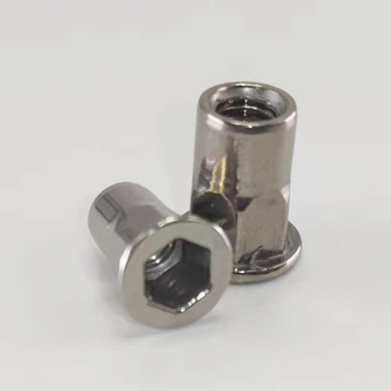 విశ్వసనీయ హెక్స్ రివెట్ నట్ ఆటోమోటివ్, ఏరోస్పేస్, రైల్వే మరియు గృహోపకరణాల వంటి పరిశ్రమలలో చాలా ఉపయోగించబడుతుంది. ఇది మెటల్ షీట్లు మరియు గొట్టాలపై బలమైన థ్రెడ్ బందు పాయింట్లను తయారు చేయడం కోసం. మీరు ఒక వైపు నుండి మాత్రమే చేరుకోగలిగే గట్టి ప్రదేశాల కోసం ఇది ప్రత్యేకంగా రూపొందించబడింది-కాబట్టి ఇది బ్లైండ్ అప్లికేషన్లకు బాగా పని చేస్తుంది. ఈ ఫాస్టెనర్ సన్నని పదార్థాలకు (0.5 మరియు 6 మిమీ మధ్య) మంచిది. మీరు అంతర్గత థ్రెడ్లను ఉపయోగిస్తున్నప్పుడు వెల్డ్ లేదా ట్యాప్ చేయాల్సిన అవసరం లేదు మరియు ఒకసారి ఇన్స్టాల్ చేసిన తర్వాత, అది సులభంగా స్పిన్ చేయదు.