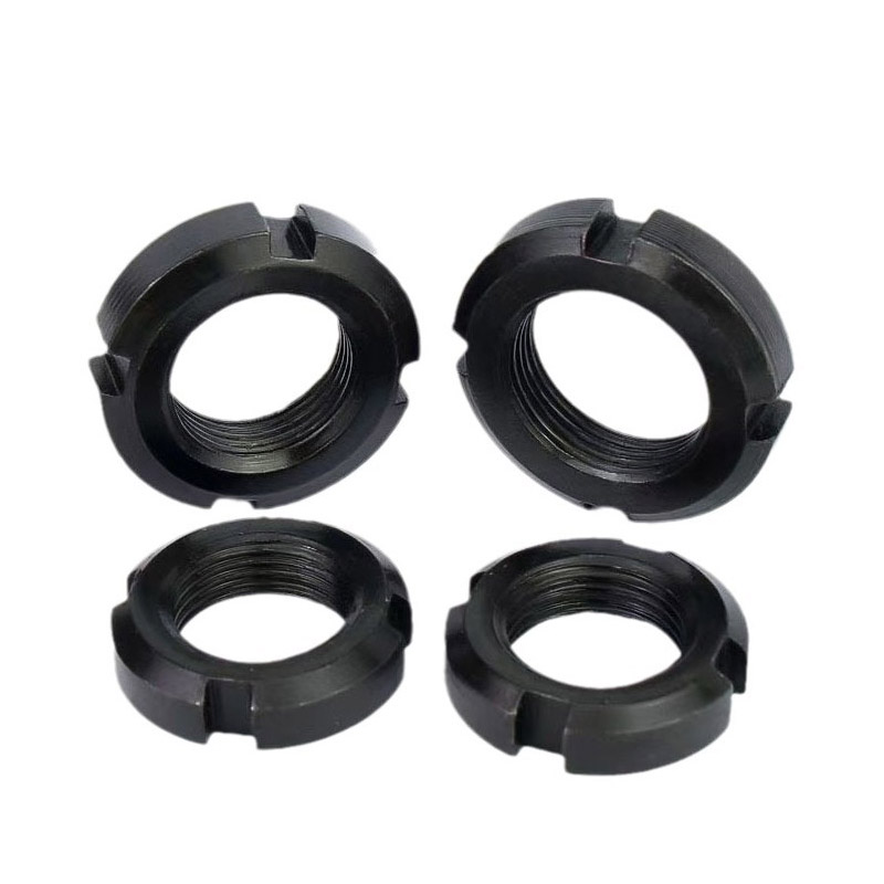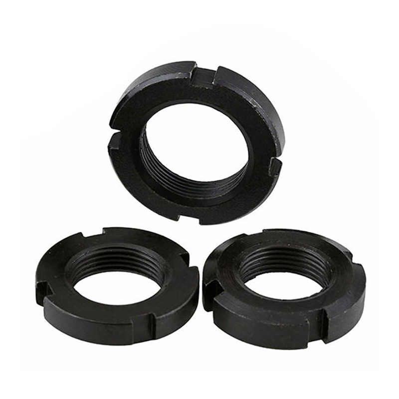 చమురు మరియు గ్యాస్ పరిశ్రమలో, వాల్వ్ భాగాలు మరియు డ్రిల్లింగ్ పరికరాలలో రగ్డ్లీ బిల్ట్ స్లాట్డ్ లాకింగ్ రౌండ్ నట్ ఉపయోగించబడుతుంది. వారు అధిక పీడనం మరియు తినివేయు వాతావరణంలో సరిగ్గా పని చేయవచ్చు. ఈ గింజలు చాలా వరకు అల్లాయ్ స్టీల్తో తయారు చేయబడ్డాయి మరియు ప్రత్యేకమైన యాంటీ-వేర్ కోటింగ్తో పూత పూయబడ్డాయి.