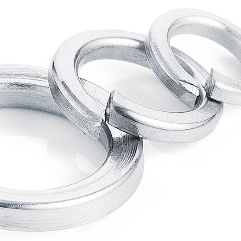 అవి మితమైన మందంతో స్ప్లిట్-రింగ్ వాషర్లు - సాధారణంగా 1 నుండి 3 మిల్లీమీటర్ల వరకు ఉంటాయి - హాట్-డిప్ గాల్వనైజ్డ్ స్టీల్తో తయారు చేయబడ్డాయి. ఈ పదార్థం వారికి వెండి రూపాన్ని మరియు అద్భుతమైన తుప్పు నిరోధకతను ఇస్తుంది.