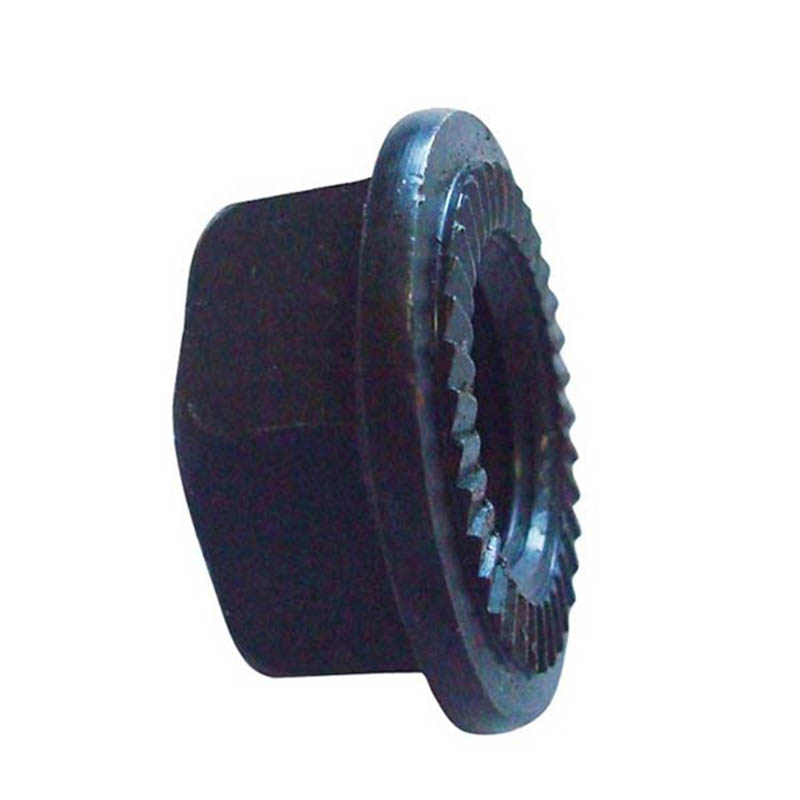 | మధ్యస్థ కార్బన్ స్టీల్ | ఈ సెరేటెడ్ ఫ్లాంజ్ షట్కోణ లాకింగ్ నట్లను ఆటోమోటివ్ సస్పెన్షన్ కాంపోనెంట్లు లేదా ట్రైలర్ హిట్లపై ఉపయోగించవచ్చు. వాటి కోసం ఉపయోగించే ఉక్కు హీట్ ట్రీట్మెంట్కు గురైంది, కాబట్టి రంపపు నిర్మాణం విచ్ఛిన్నం కాకుండా గట్టిగా నిమగ్నమై ఉంటుంది. హైవే డ్రైవింగ్ సమయంలో లేదా భారీ లోడ్లను వదులుకోకుండా వైబ్రేషన్లను తట్టుకోగలవు. సాధారణంగా, అవి మందమైన జింక్ పొరతో పూత పూయబడతాయి. |