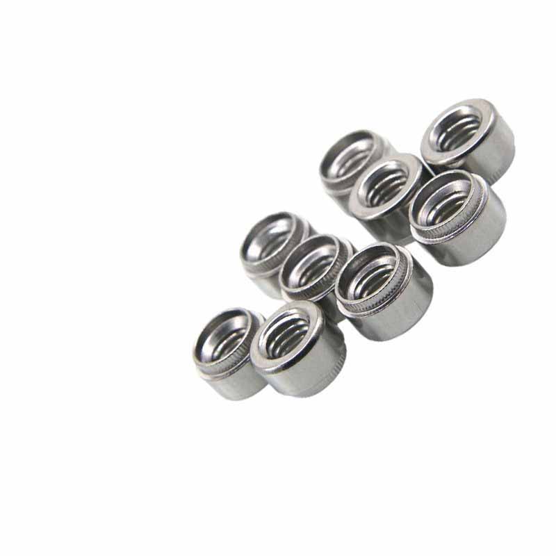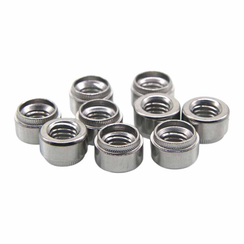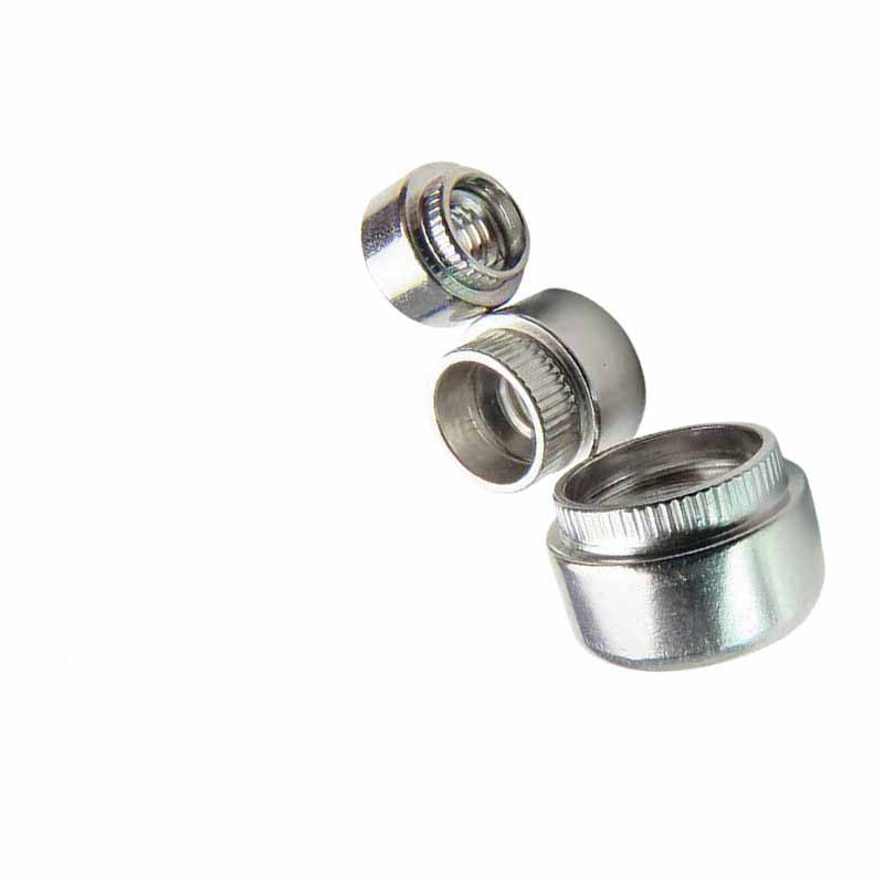 ఈ స్టెయిన్లెస్ స్టీల్ సెల్ఫ్ క్లిన్చింగ్ రౌండ్ రివెట్ బుష్ శాశ్వత, వైబ్రేషన్-ప్రూఫ్ బందు కోసం తయారు చేయబడింది. ఇది ఎలా పనిచేస్తుందో ఇక్కడ ఉంది: మీరు విస్తరించిన భాగాన్ని దిగువన ముందే డ్రిల్లింగ్ రంధ్రంగా అంటుకుంటారు. మీరు దీన్ని ఇన్స్టాల్ చేసినప్పుడు, సాధారణంగా రివెట్ గన్ లేదా ప్రెస్తో, ఈ భాగం వెనుక వైపు (మీరు చూడలేని వైపు) వైకల్యం చెందుతుంది మరియు ఘనమైన యాంత్రిక తాళాన్ని సృష్టిస్తుంది. అదే సమయంలో, గింజపై ఉన్న అంచు మరియు నర్లింగ్ ఉపరితలం పట్టుకుని మరియు మీరు దానిని బిగించినప్పుడు ఒత్తిడిని వ్యాప్తి చేస్తుంది.
