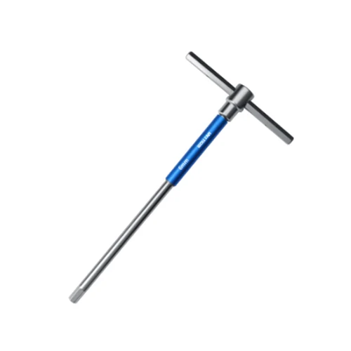 టి-షేప్డ్ కాన్ఫిగరేషన్: రెంచ్ ఒక విలక్షణమైన టి-ఆకారపు డిజైన్ను అవలంబిస్తుంది, ఒక చివర హ్యాండిల్గా మరియు మరొక చివర షడ్భుజి ఆకారపు తలని కలిగి ఉంటుంది, వివిధ ప్రాదేశిక స్థానాల్లో కార్యకలాపాలను సులభతరం చేస్తుంది. షట్కోణ ఆకారపు తల: తల షట్కోణ-తలల స్క్రూలతో గట్టిగా నిమగ్నమై ఉంటుంది.