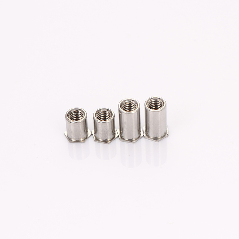 మొదట, షీట్ మెటల్లో రంధ్రం వేయండి. రంధ్రం పరిమాణం తప్పనిసరిగా త్రూ హోల్ షట్కోణ రివెట్ నట్ యొక్క బయటి వ్యాసంతో సరిపోలాలి-చాలా పెద్దది మరియు అది లాక్ చేయబడదు, చాలా చిన్నది షీట్ను దెబ్బతీస్తుంది. రంధ్రంలో మిగిలి ఉన్న ఏదైనా మెటల్ షేవింగ్లను శుభ్రం చేయండి; వారు సంస్థాపనను నిరోధించవచ్చు.