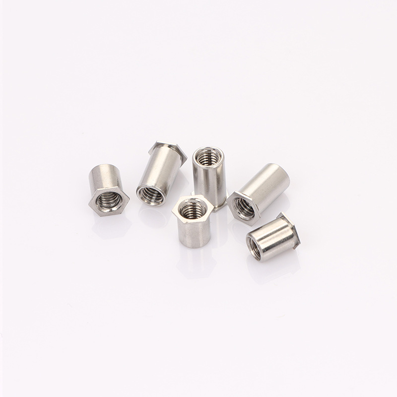 సాధనం కొద్దిగా విడుదలైనట్లు మీకు అనిపించే వరకు నొక్కుతూ ఉండండి-దీని అర్థం గింజ యొక్క తోక విస్తరించి, షీట్ వెనుకవైపు లాక్ చేయబడింది. అప్పుడు గింజ నుండి సాధనాన్ని విప్పు. అతిగా నొక్కడం మానుకోండి; అది షీట్ను వంచవచ్చు లేదా గింజను విచ్ఛిన్నం చేయవచ్చు. హోల్ షట్కోణ రివెట్ నట్ ద్వారా మీరు రంధ్రం పరిమాణాన్ని సరిగ్గా పొందిన తర్వాత ఉపయోగించడం సులభం, ప్రాథమిక ఉద్యోగాలకు సంక్లిష్ట నైపుణ్యాలు అవసరం లేదు.