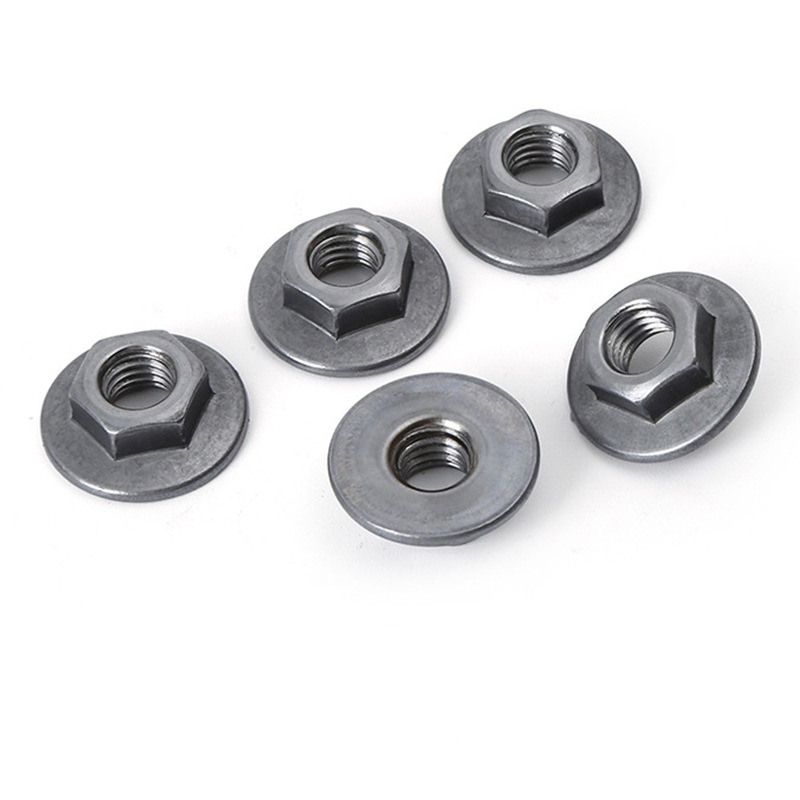 బోల్ట్ చివరతో గింజను వరుసలో ఉంచండి మరియు ప్రారంభించడానికి దానిని చేతితో సవ్యదిశలో తిప్పండి. ఆపై దాన్ని బిగించడానికి రెంచ్ని ఉపయోగించండి-అతిగా బిగించవద్దు, ఎందుకంటే ఇది ఉపరితలం దెబ్బతింటుంది లేదా థ్రెడ్లను తీసివేయవచ్చు. ఆటోమోటివ్ కాంపోనెంట్లు, ఫర్నిచర్ ఫ్రేమ్లు లేదా చిన్న మెషినరీ వంటి స్థిరమైన ఫాస్టెనింగ్ అవసరమయ్యే భాగాలకు ఇది బాగా పని చేస్తుంది. ఫ్లాంజ్ యొక్క సెర్రేషన్లు (ఉన్నట్లయితే) వైబ్రేషన్ నుండి వదులవడాన్ని నిరోధించడంలో సహాయపడతాయి. యూనివర్సల్ మోడిఫైడ్ ఫ్లాంజ్ నట్ ప్రత్యేక వాషర్ను జోడించడం అసౌకర్యంగా లేదా స్థలం పరిమితంగా ఉన్న ప్రదేశాలకు అనువైనది.