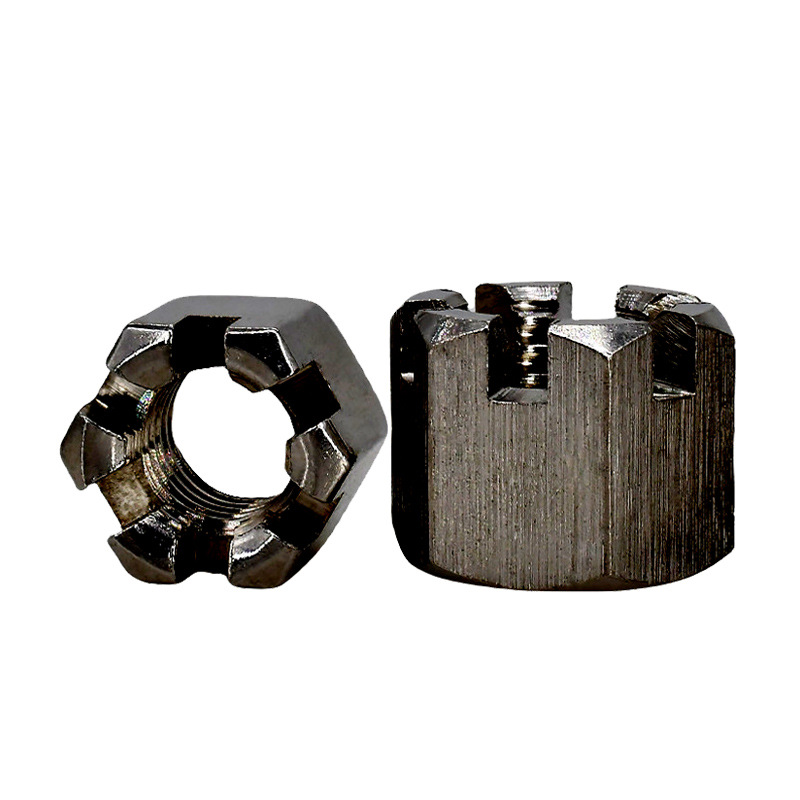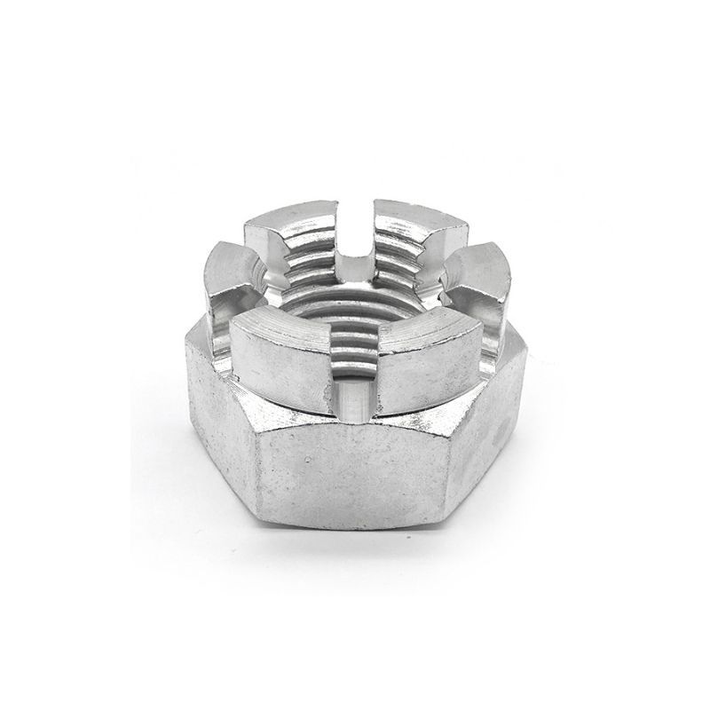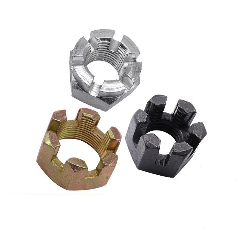 జ: స్లాట్తో కదిలించలేని కిరీటం గింజ గురించి ప్రధాన విషయం ఏమిటంటే కిరీటంలో కత్తిరించిన స్లాట్. మీరు గింజను బోల్ట్ మీద బిగించిన తర్వాత, మీరు బోల్ట్ యొక్క షాంక్లో ముందుగా డ్రిల్లింగ్ చేసిన రంధ్రం ద్వారా స్ప్లిట్ పిన్ (కోటర్ పిన్) ను అంటుకుని, ఆ స్లాట్ ద్వారా. అప్పుడు మీరు పిన్ చివరలను తిరిగి వంచుతారు. ఇది స్లాట్ చేసిన కిరీటం గింజను స్పిన్నింగ్ లేదా వదులుగా నుండి ఆపివేస్తుంది -నిజంగా బలమైన కంపనాలు లేదా కదిలే లోడ్లతో కూడా. అందుకే ముఖ్యమైన భద్రత-సంబంధిత ఉద్యోగాలకు ఇది బాగా పనిచేస్తుంది.