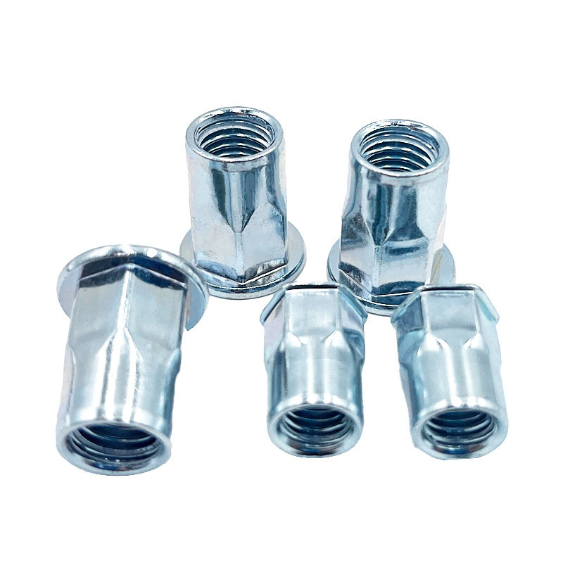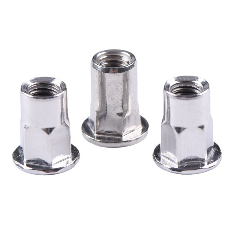 బహుముఖ హెక్స్ రివెట్ నట్ షట్కోణ శరీరాన్ని కలిగి ఉంటుంది. గుండ్రంగా ఉండే వాటిలా కాకుండా, ఈ ఆకారాన్ని ఇన్స్టాల్ చేసిన తర్వాత తిప్పకుండా చేస్తుంది. ఇది దాని రూపకల్పనలో కీలకమైన భాగం-ఇది షట్కోణ రంధ్రాలకు సరిపోయేలా తయారు చేయబడింది. ఈ విధంగా, మీరు స్క్రూను బిగించినప్పుడు, గింజ దానితో పాటు తిరగదు. పూర్తి షడ్భుజి మరియు సెమీ షడ్భుజి శైలులు వంటి వివిధ రకాలు అందుబాటులో ఉన్నాయి. హెడ్లు ఫ్లాట్ హెడ్ మరియు చిన్న కౌంటర్సంక్ హెడ్ వంటి ఎంపికలలో కూడా వస్తాయి. మీరు మెటీరియల్తో ఫ్లష్గా కూర్చోవాలనుకుంటున్నారా లేదా ఇన్స్టాలేషన్ తర్వాత కొంచెం ప్రొజెక్షన్ కలిగి ఉండాలనుకుంటున్నారా, మీ అవసరాలకు సరిపోయేదాన్ని మీరు ఎంచుకోవచ్చు.